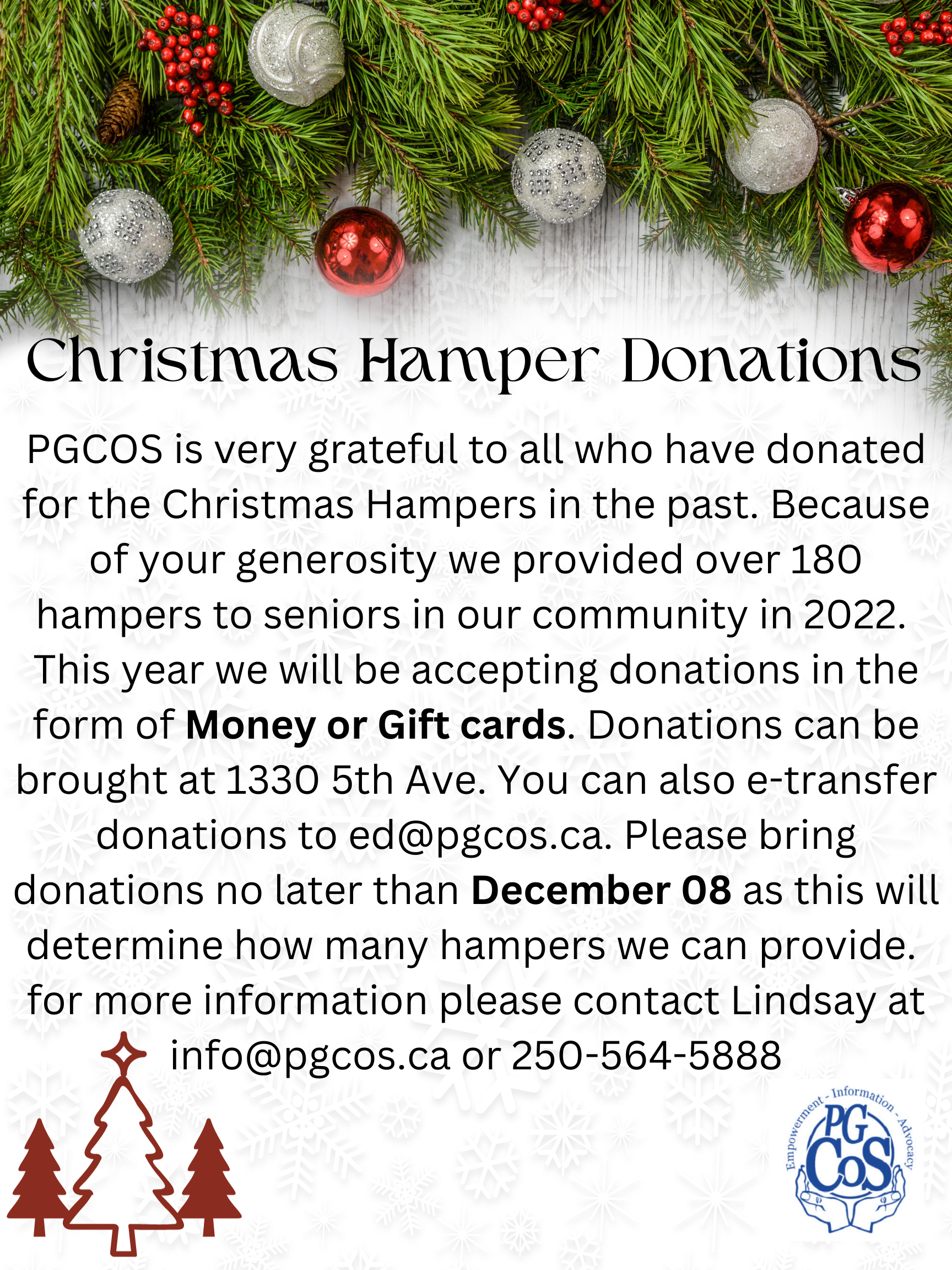 We are grateful for all who contributed to our annual Christmas Hampers for Low-Income Seniors Project! The Prince George community are amazing!