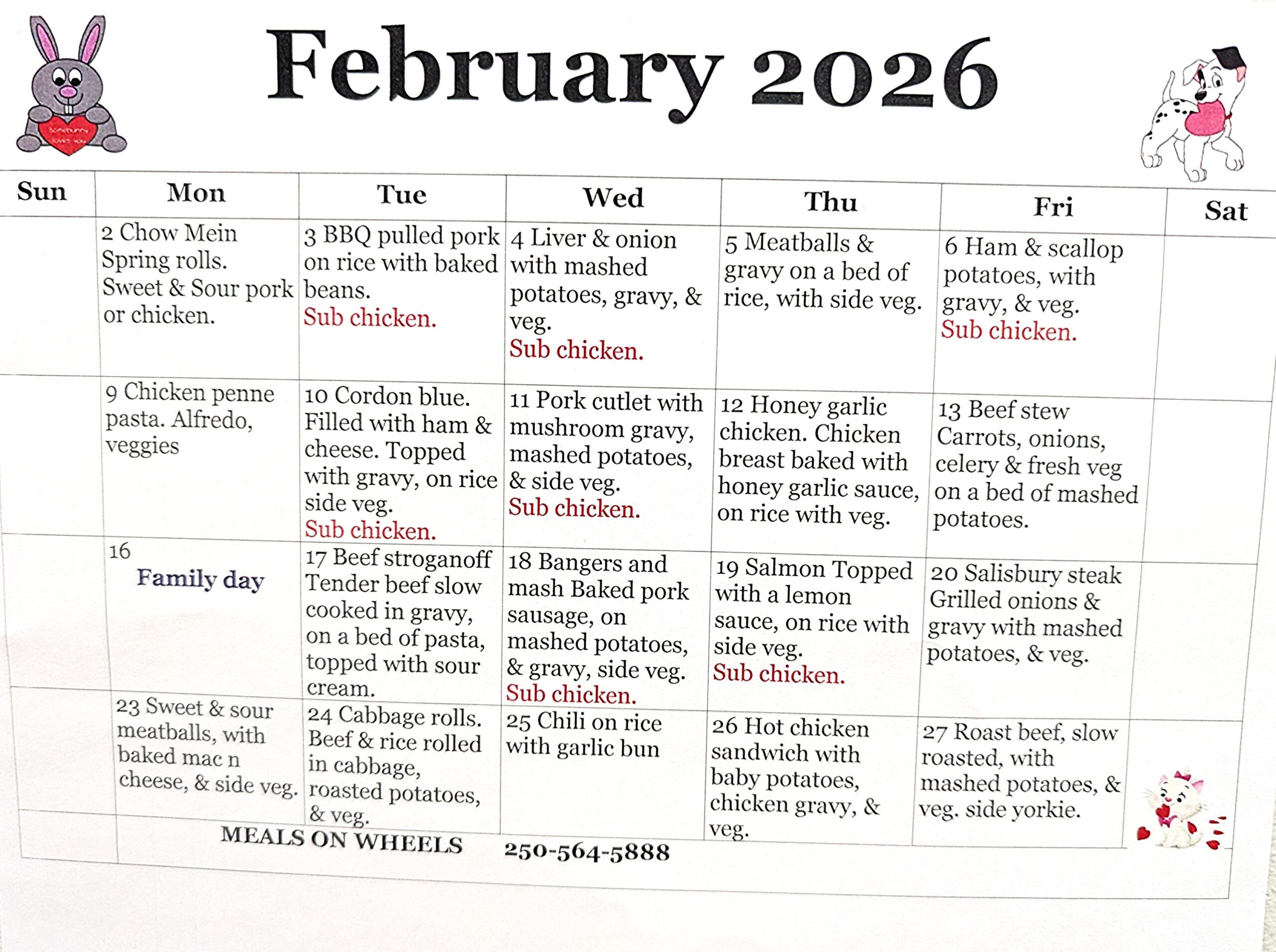 Meals on Wheels Menu: